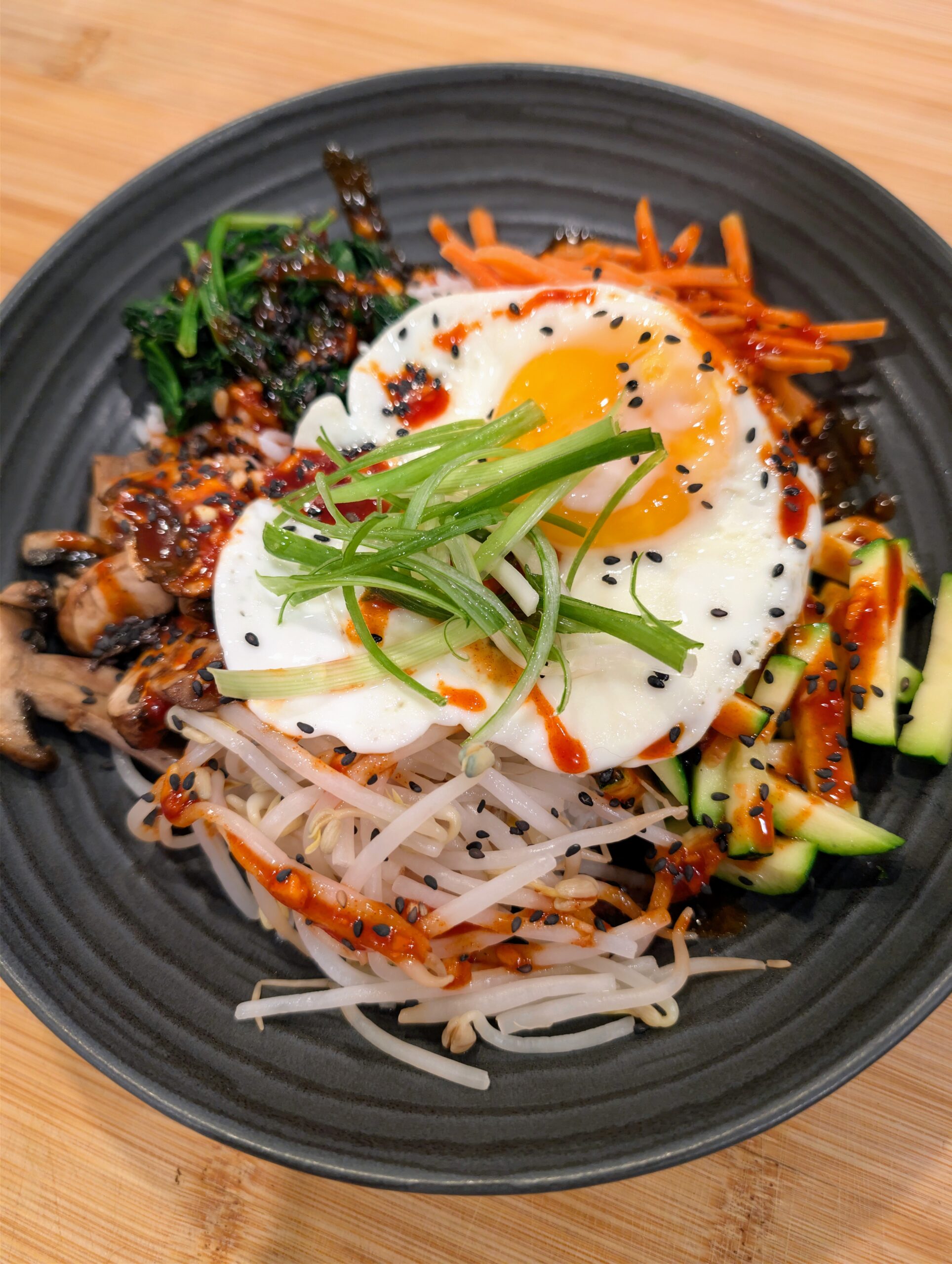 Learn how to make the best homemade Vegetarian Bibimbap! This easy, meatless Korean rice bowl is packed with fresh vegetables and layered with savory flavors.