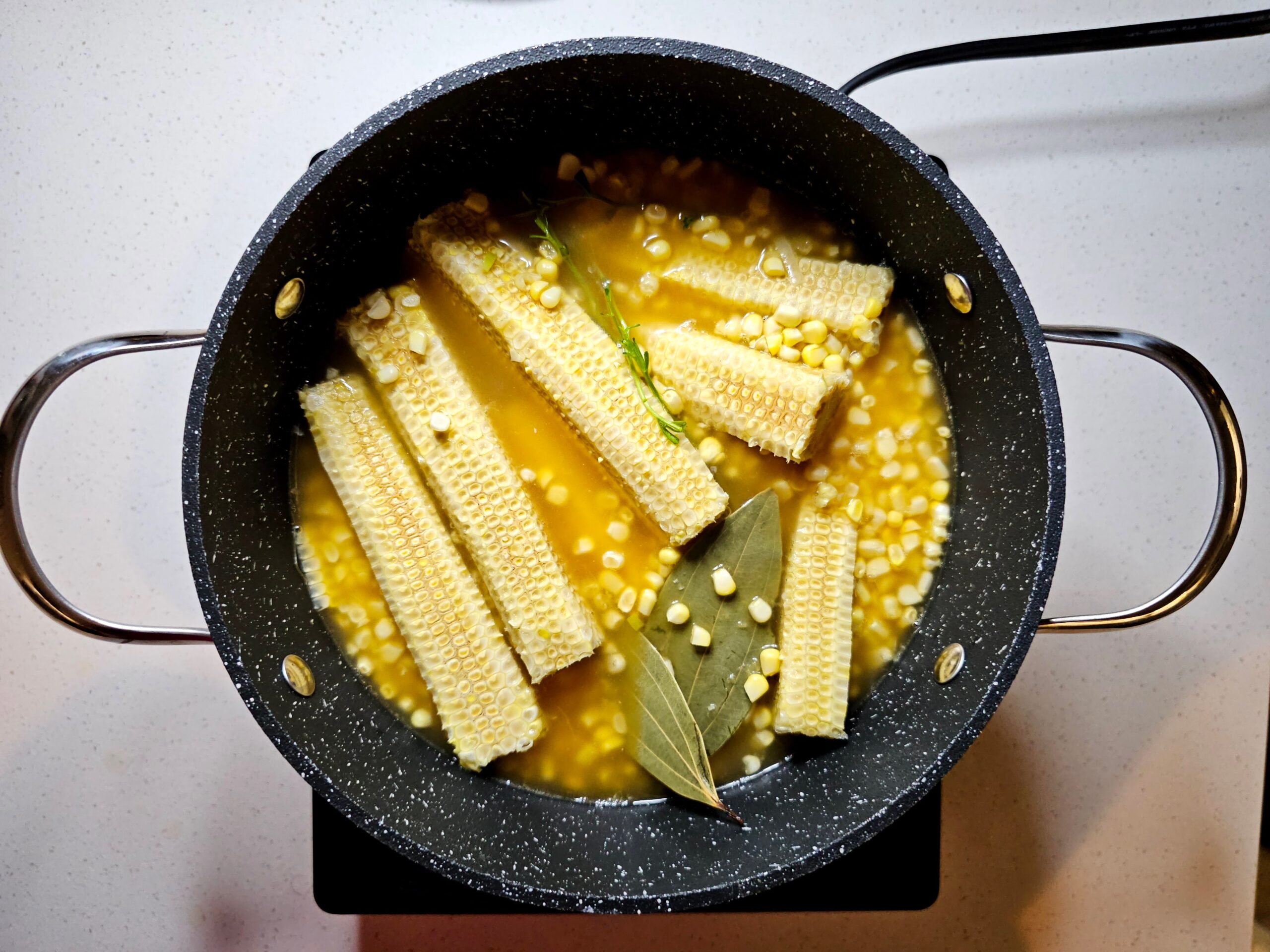 Keeping the cobs in while pressure cooking helps in making the soup creamier and more “corny” because the cobs are packed with flavor and natural starches. As the soup cooks under high pressure, the heat extracts the residual sugars and starches from the cobs, infusing the broth with a deep, sweet corn flavor. These starches also slightly thicken the soup, contributing to its creamy texture without needing extra cream or thickeners.
