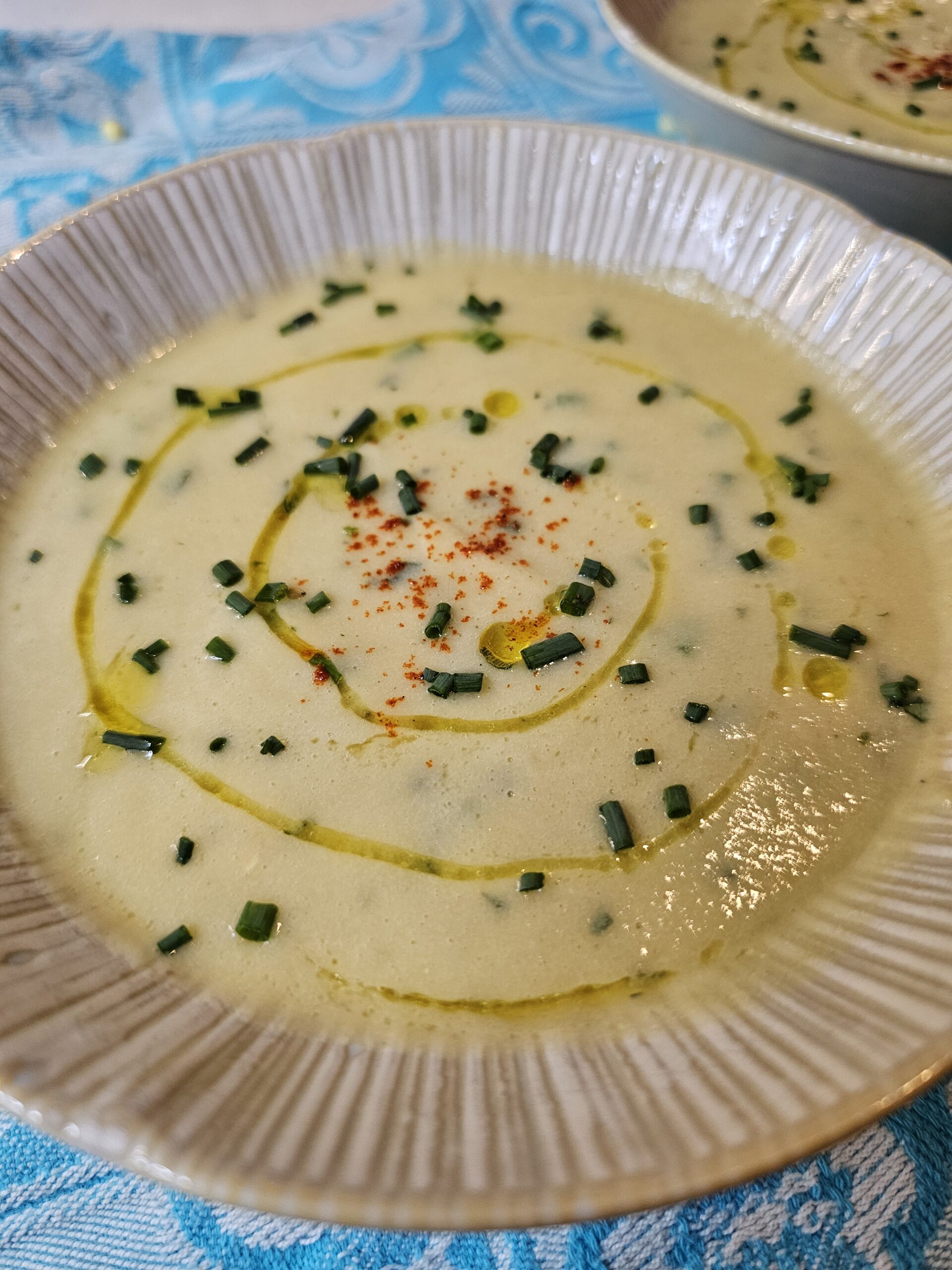 Pour the soup back into the Instant Pot or a serving pot. Stir in the reserved corn kernels for added texture and season with salt and pepper to taste. Mix in the minced tarragon leaves for a fresh, herby note. Serve the soup warm or chilled, garnished with minced chives and a drizzle of olive oil. The chives add a subtle pop of flavor, while the olive oil lends a luxurious finish.