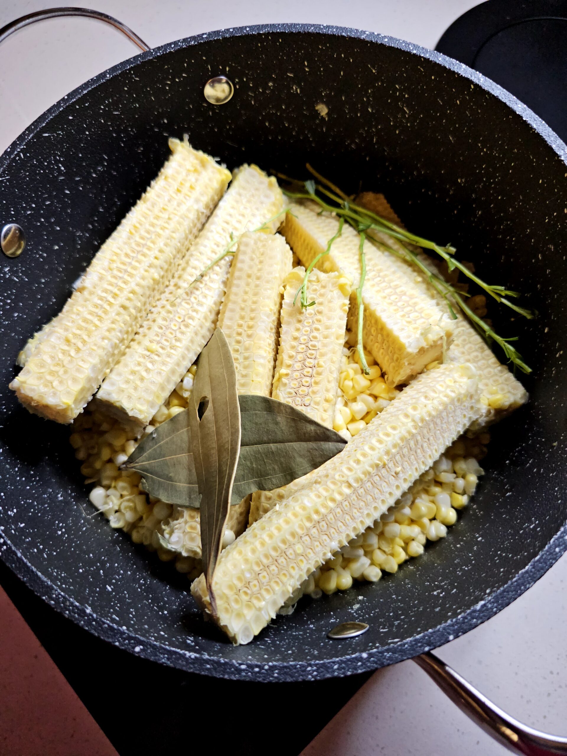 - 6 ears corn kernels cut off and cobs reserved