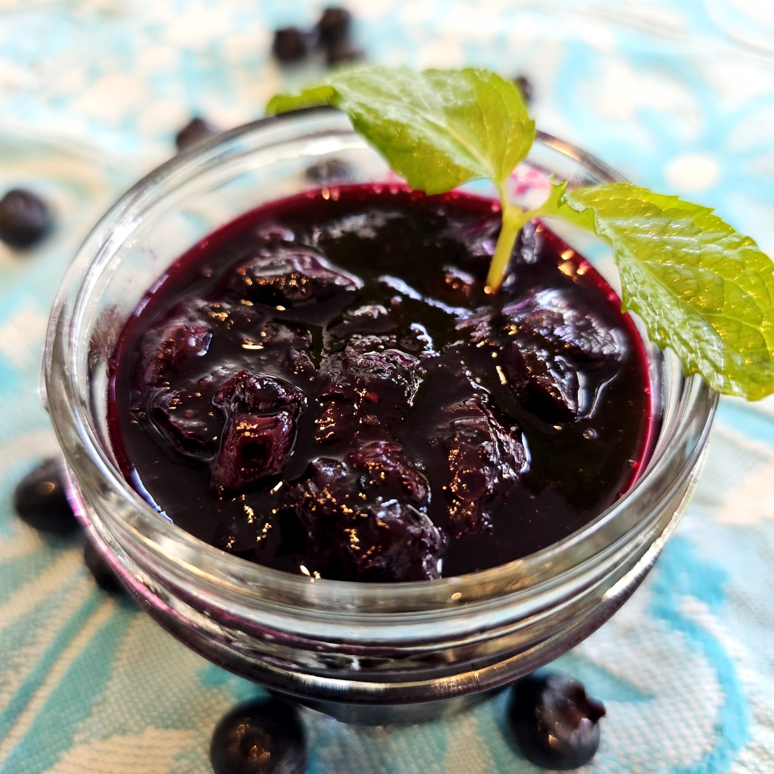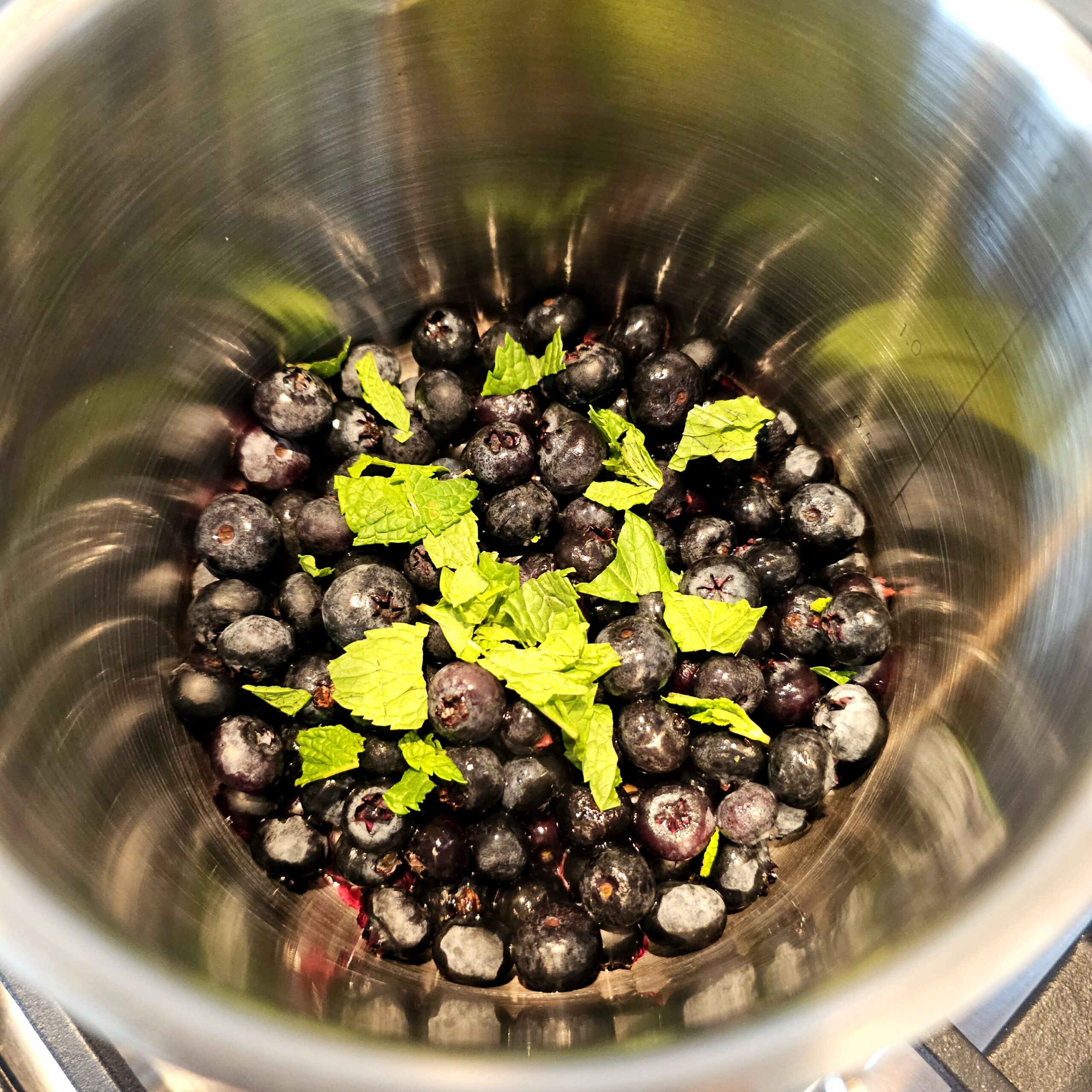 - Add the blueberries, sugar, lemon juice, and mint to a small saucepan over medium heat.12 ounces blueberries, 1 tablespoon granulated or raw sugar, 1 tablespoon lemon juice, 1 tablespoon fresh mint leaves