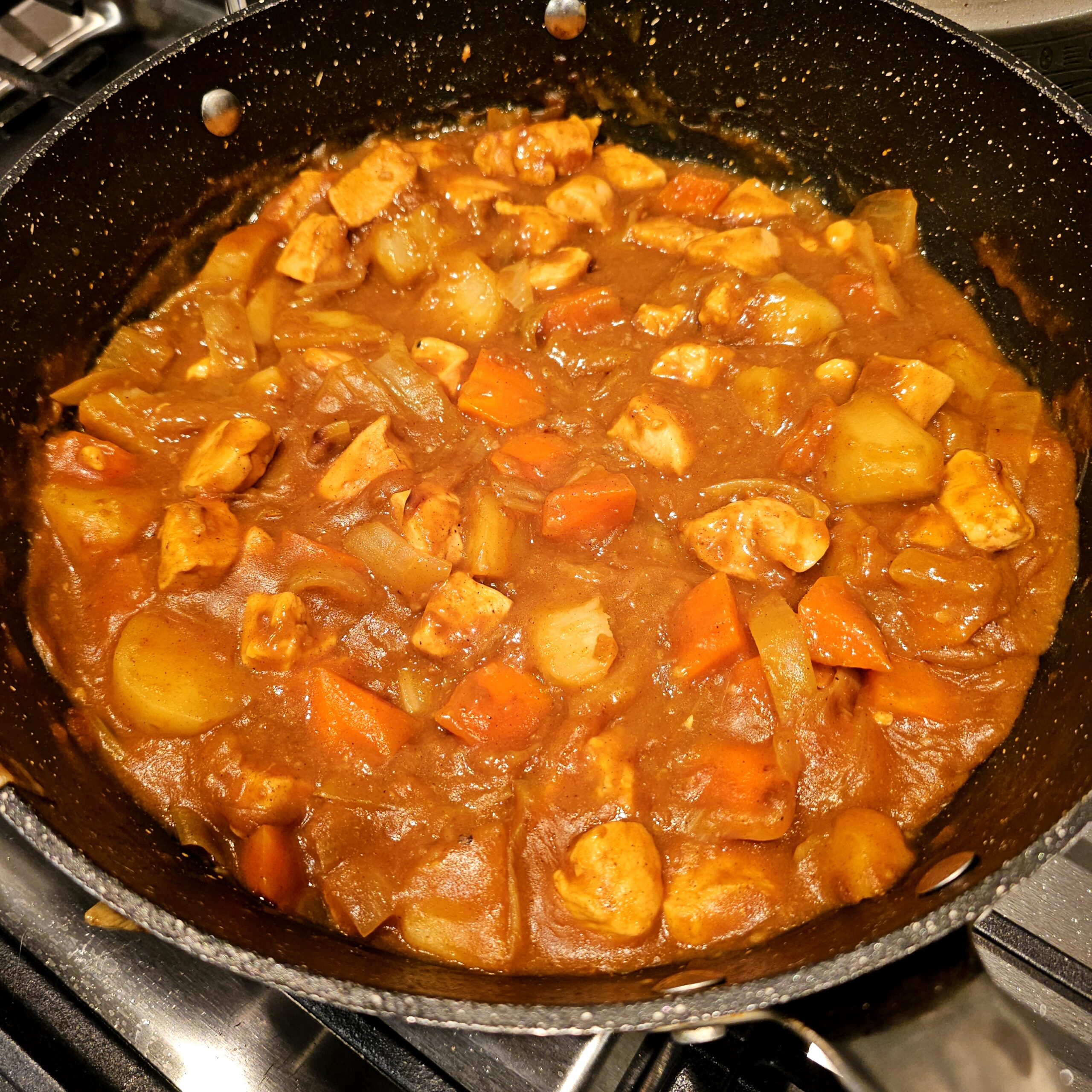 Uncover the pot and stir in the Japanese curry sauce blocks, one at a time, until fully dissolved. Continue to simmer the curry uncovered for another 5-10 minutes, stirring occasionally. This step thickens the curry and allows the flavors to meld together beautifully.