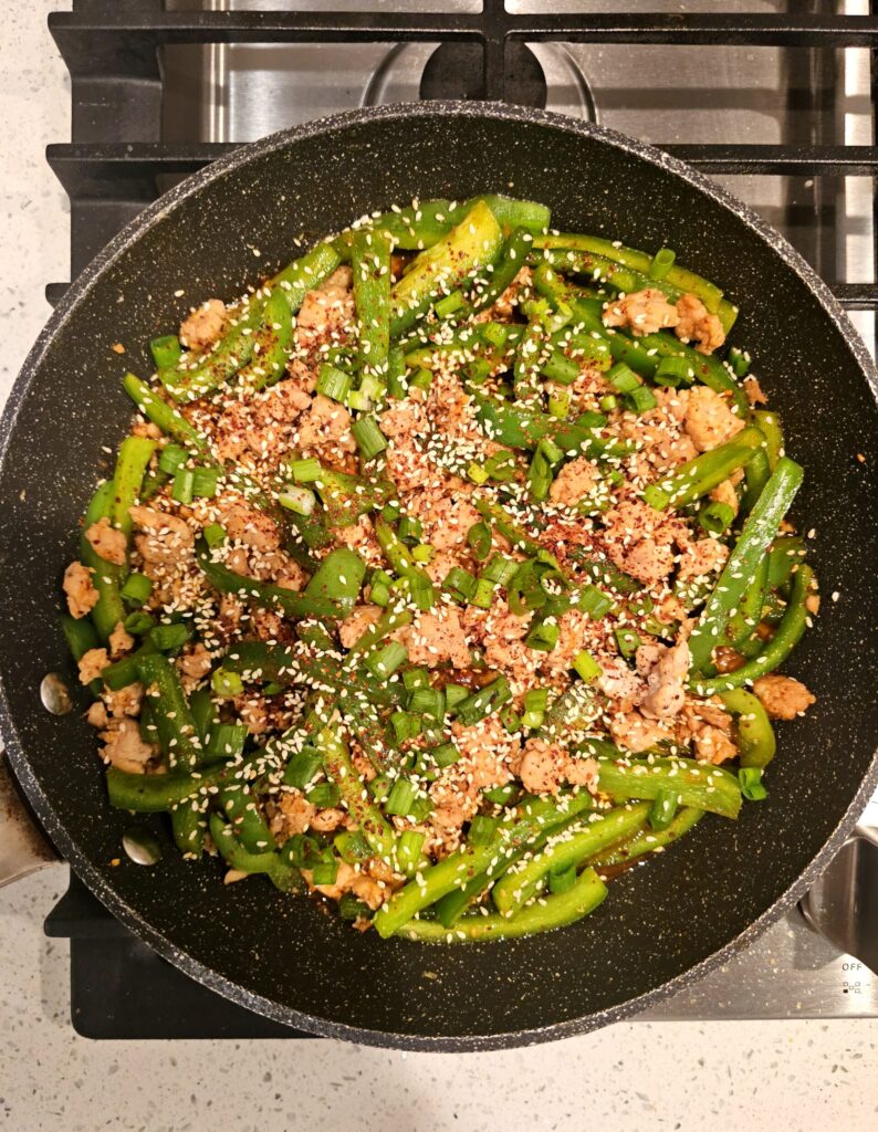 This dish has quickly become one of our go-to meals when we want something quick, healthy, and packed with flavor. The sauce is the real star here—garlicky, slightly sweet, with a kick of heat from gochujang and crushed red pepper. It coats the ground chicken and bell peppers beautifully, turning simple ingredients into something that tastes like it took hours to prepare. We also love how versatile it is; you can adjust the spice level or swap out the vegetables to suit whatever you have on hand.