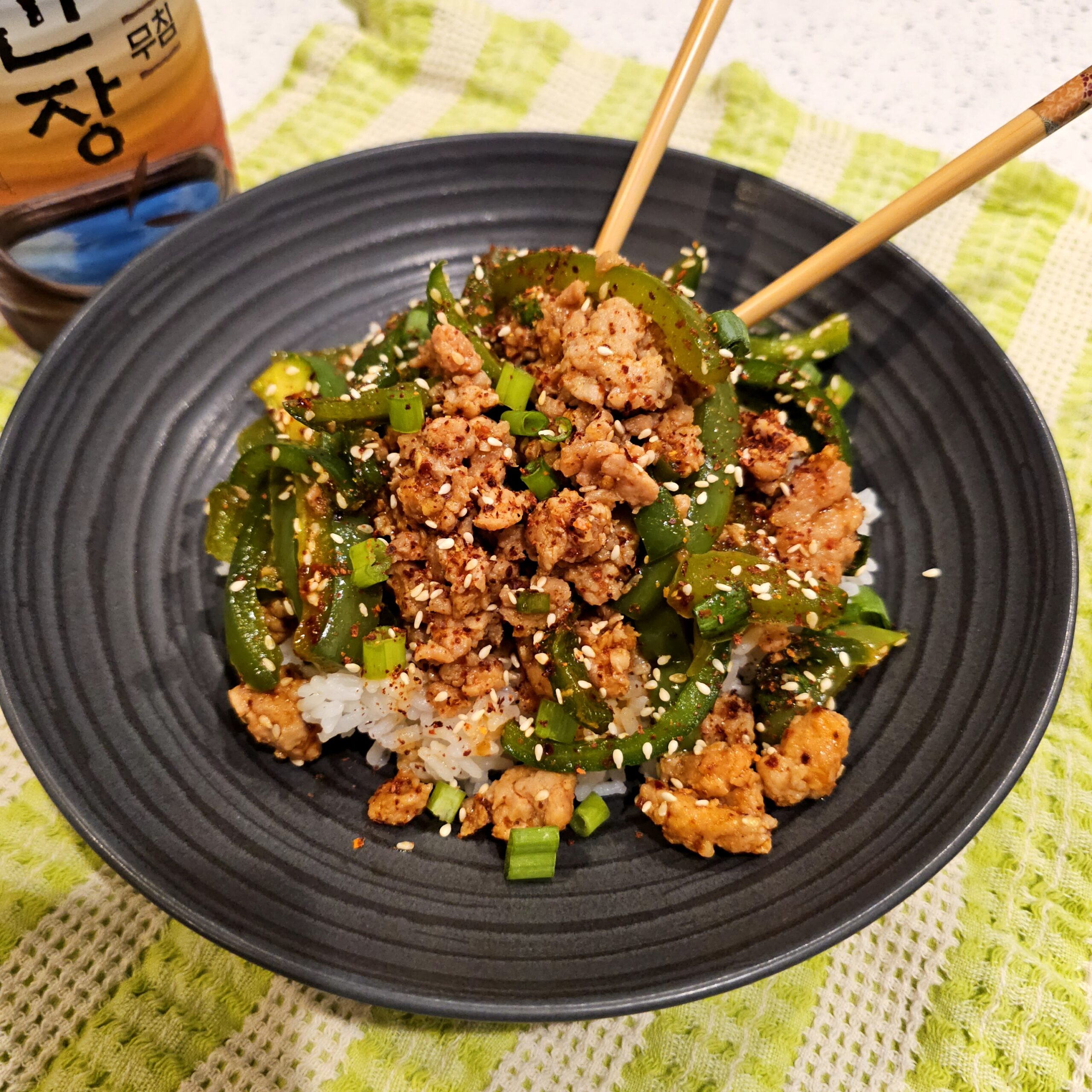 Serve the chicken mixture over a bowl of steamed rice or your preferred base. Feel free to add more toppings like pickled vegetables, cucumber slices, or a fried egg for extra flair. Enjoy this quick, flavorful meal warm, and savor the balance of sweet, savory, and spicy flavors.