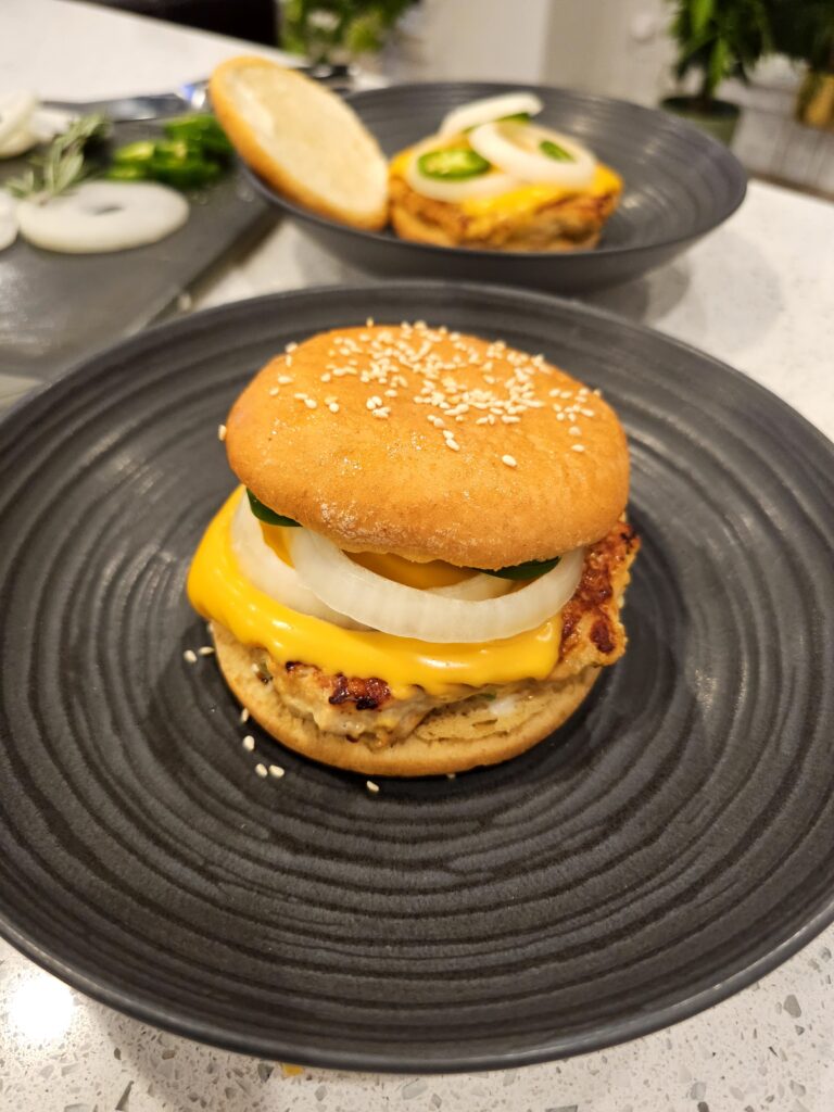 After some experimenting, we landed on this version, and it has become a go-to in our kitchen. Fresh rosemary adds a bold, herby kick, while Dijon mustard, Worcestershire sauce, and a touch of mayo keep the patties incredibly juicy and flavorful. The combination of onion, garlic, and jalapeño brings just the right amount of heat and depth without overpowering the star of the show—the chicken itself. Whether grilled or pan-seared, these burgers turn out tender, perfectly seasoned, and incredibly satisfying.