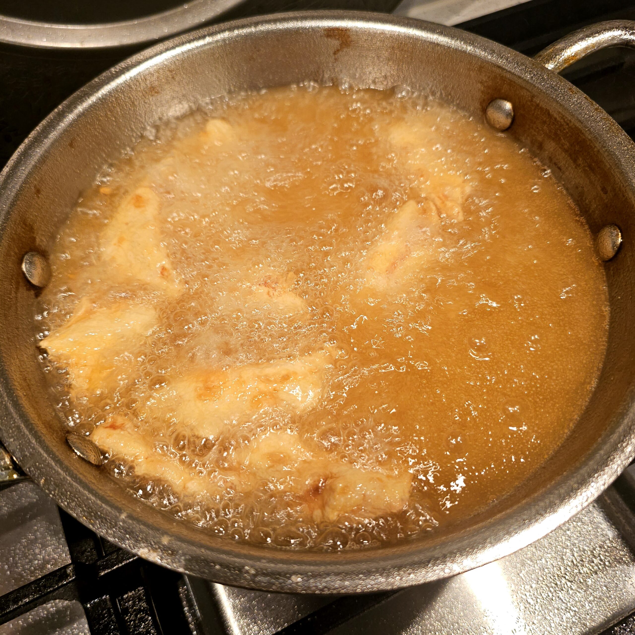 - Heat vegetable oil in a wok or large frying pan over medium-high heat until it reaches 350°F (see note 1 below).4 cups vegetable oil