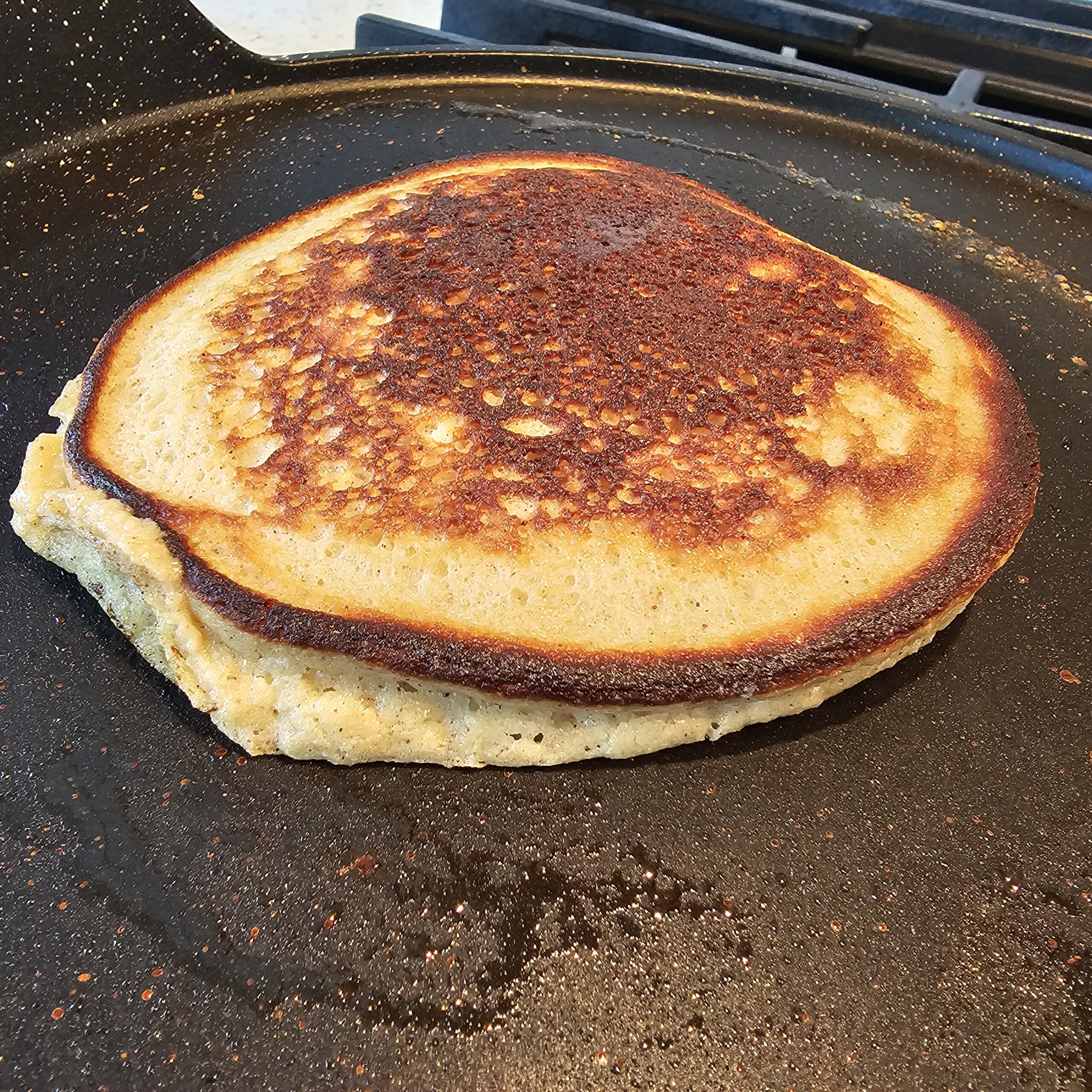 Tip: If your pan starts to get too hot between batches, lower the heat or turn it off for a moment. Almond flour pancakes can burn more easily than regular pancakes, so keep an eye on the temperature.