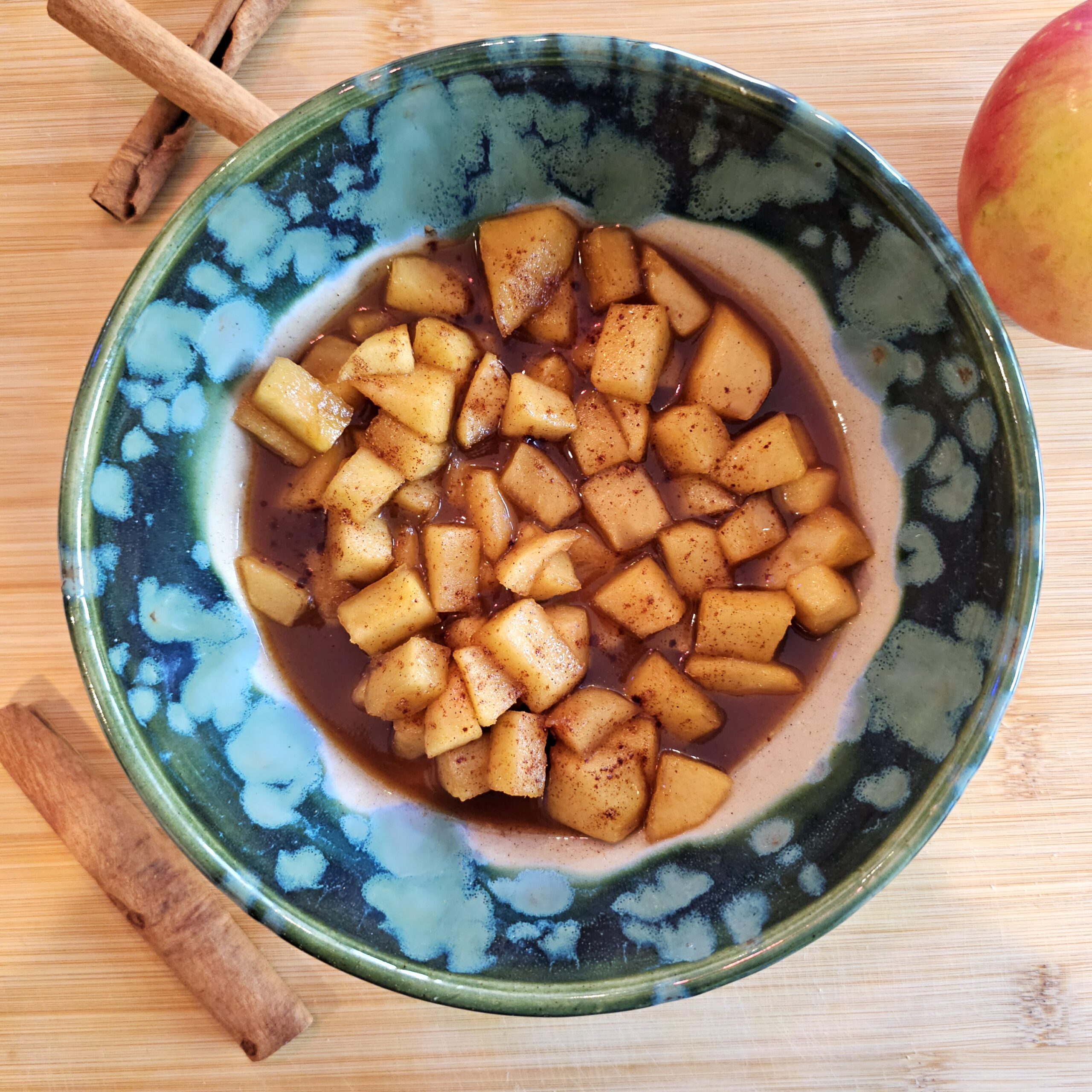 This is one of those little recipes we make all the time without really thinking about it. If we have an apple on the counter and something warm like pancakes, oatmeal, or even a bowl of yogurt, these caramelized apples are usually not far behind.