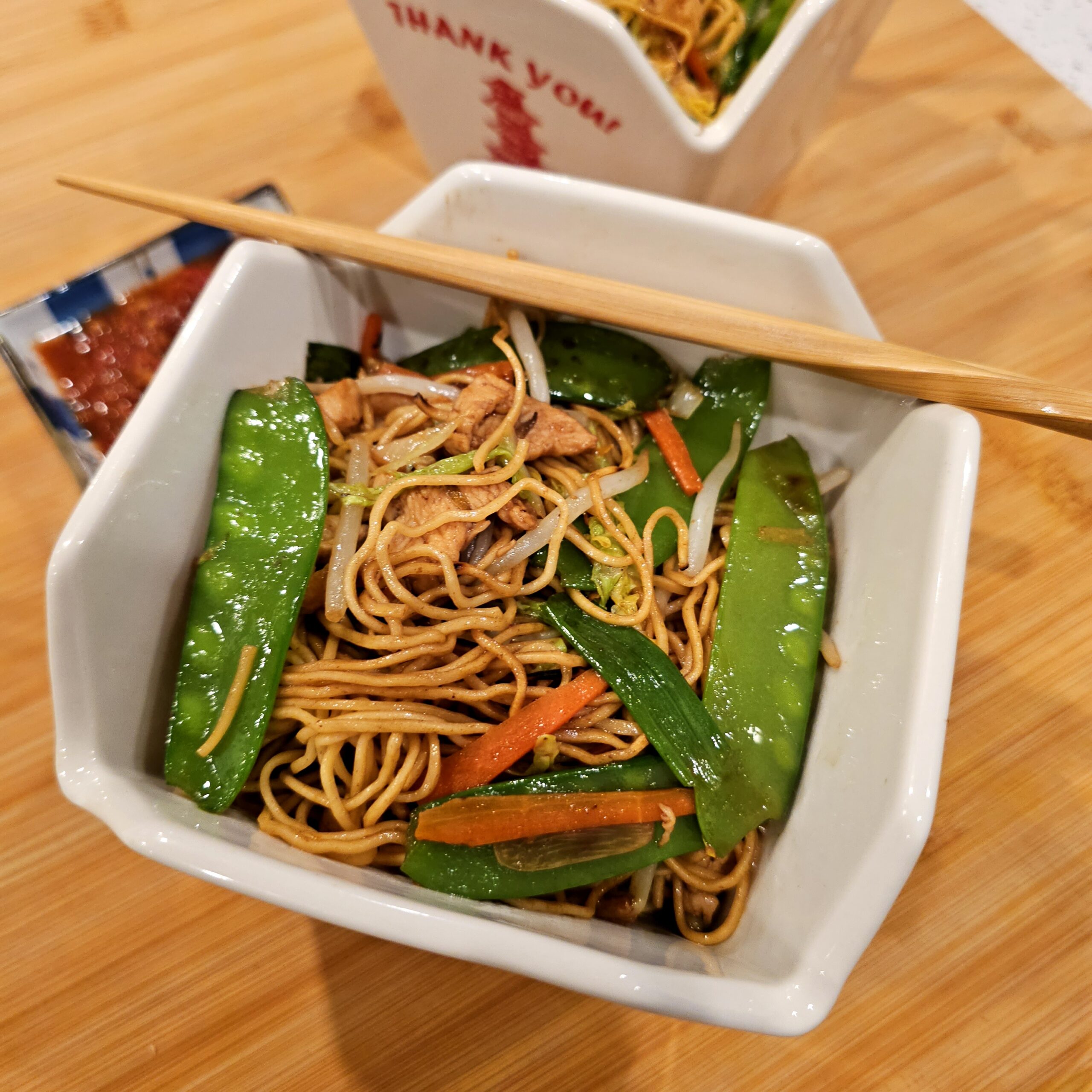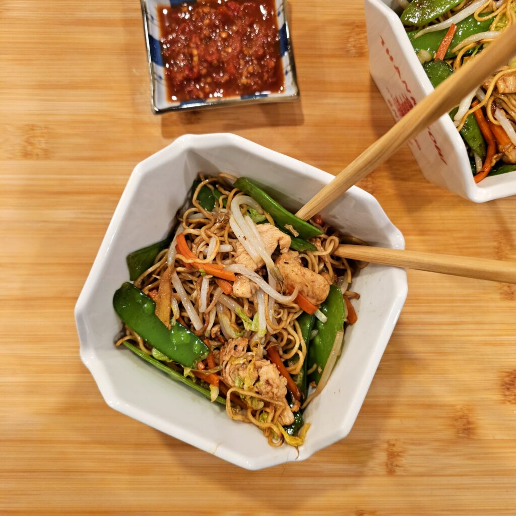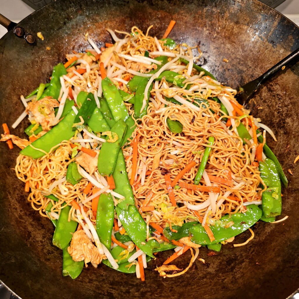 This version uses familiar ingredients—chicken breast, snow peas, carrots, cabbage—but the combination, once stir-fried together with garlic, ginger, and a punchy soy-based sauce, creates something greater than the sum of its parts. We finish it off with mung bean sprouts for crunch and a final toss to keep everything fresh and vibrant.
