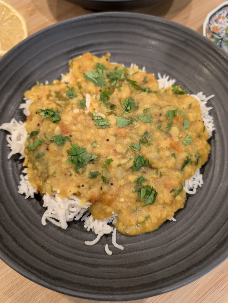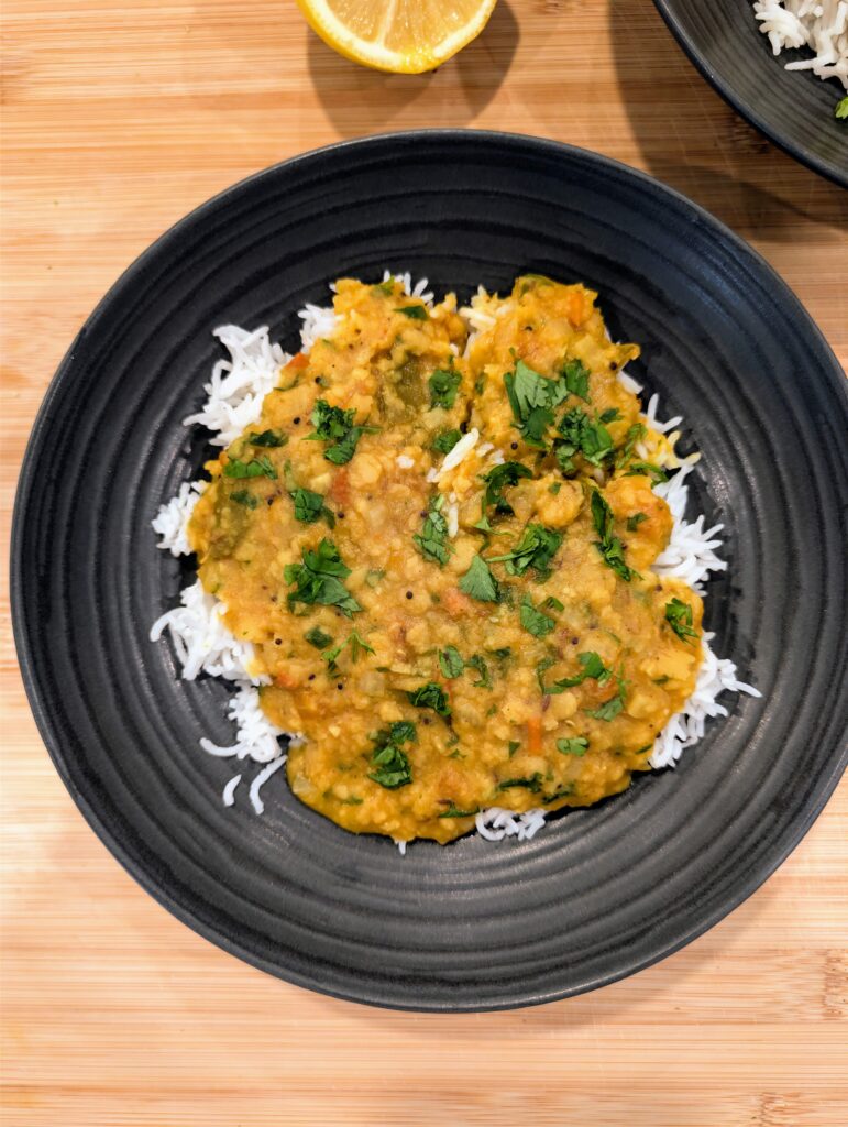 Yes, you can easily substitute the toor dal. Red lentils (masoor dal) or yellow moong dal work very well. If you use red lentils, you can skip the 30-minute soaking step and reduce the pressure cooking time to 5 minutes, as they break down much faster.