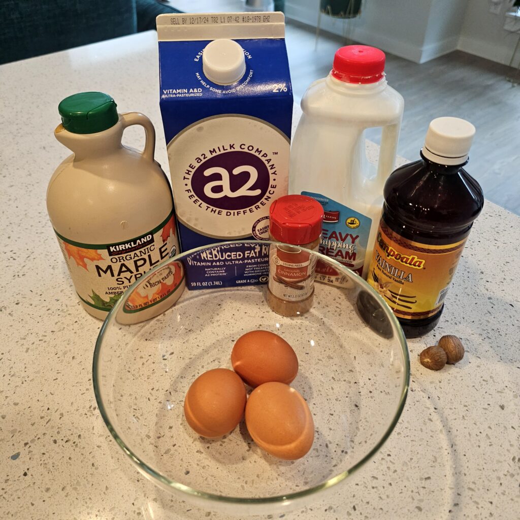 - EGGS: Essential for binding the custard. They give the toast structure and help it cook up golden and fluffy.
