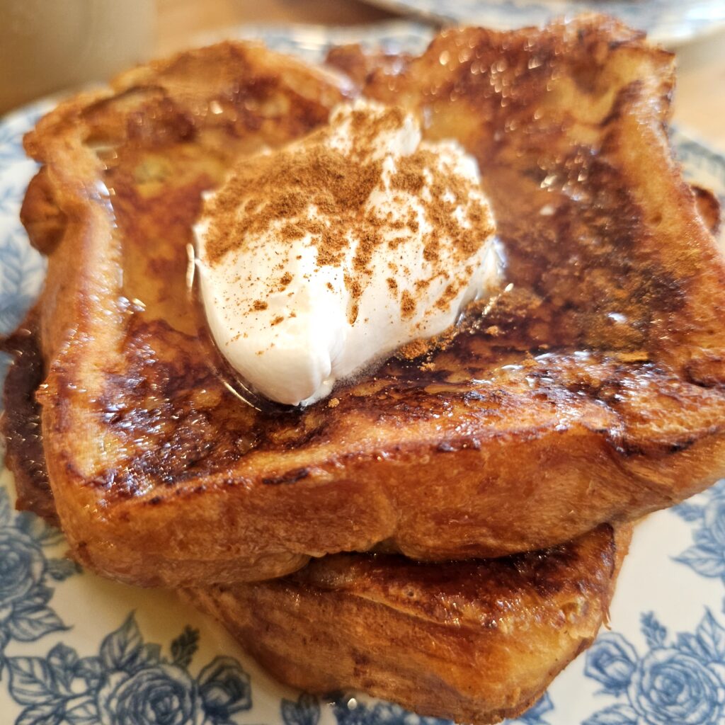 This version came together during the early months of the COVID lockdown, when we were home around the clock and cooking more than ever. We made French toast several times a week, adjusting the custard, trying different breads, and figuring out what gave us that perfect golden exterior with a soft, custardy middle. It started as a way to use up stale bread and quickly became something we both looked forward to.