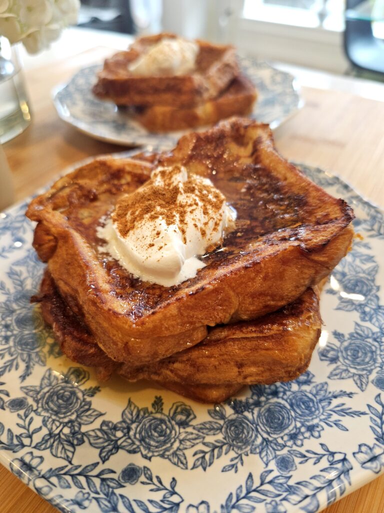 French toast has always been a go-to breakfast in our house. We often make it on slow weekend mornings, especially if there is some leftover challah or brioche in the kitchen. But we have also been known to pull it together for “brinner” when the day gets away from us and all we really want is something simple and comforting. Add a little fruit or whipped cream, and it becomes the kind of meal that works any time of day.